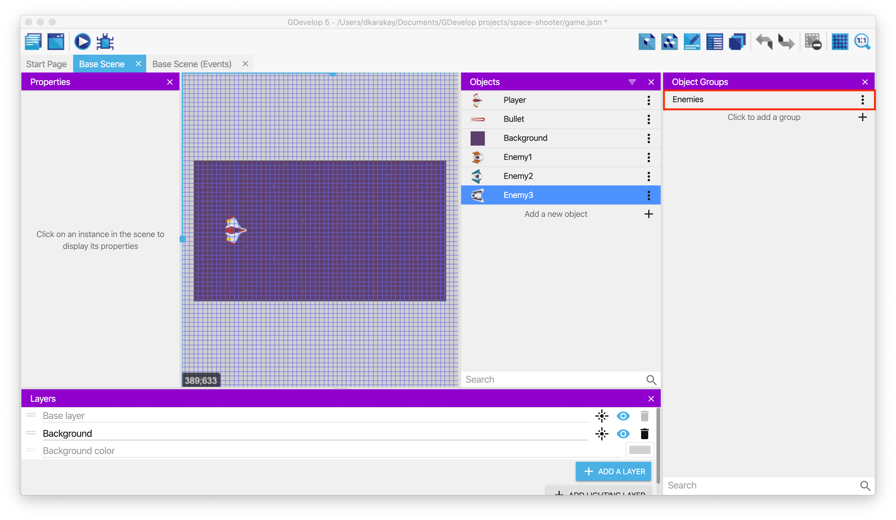 Finally, rename the object group to "Enemies."